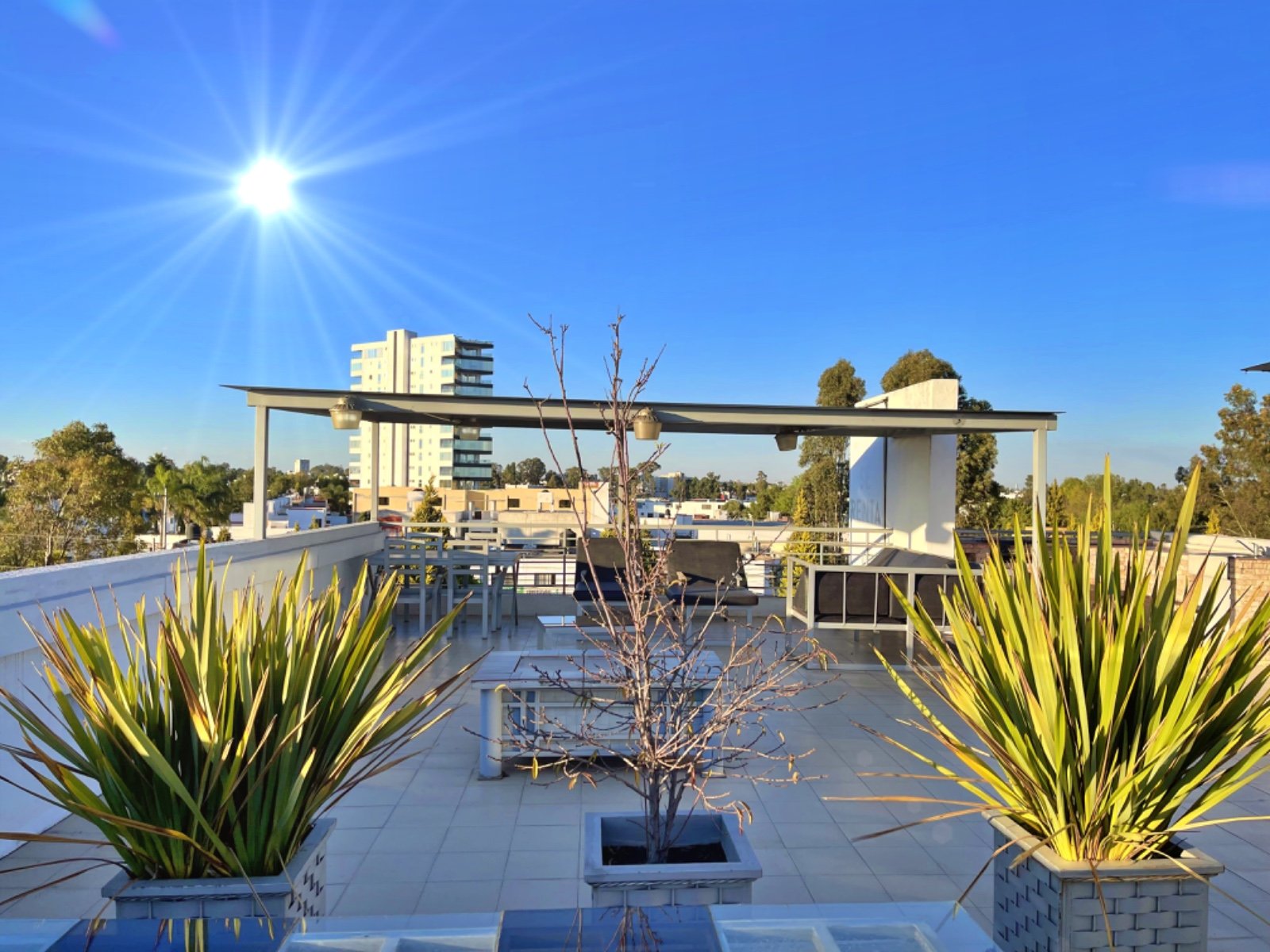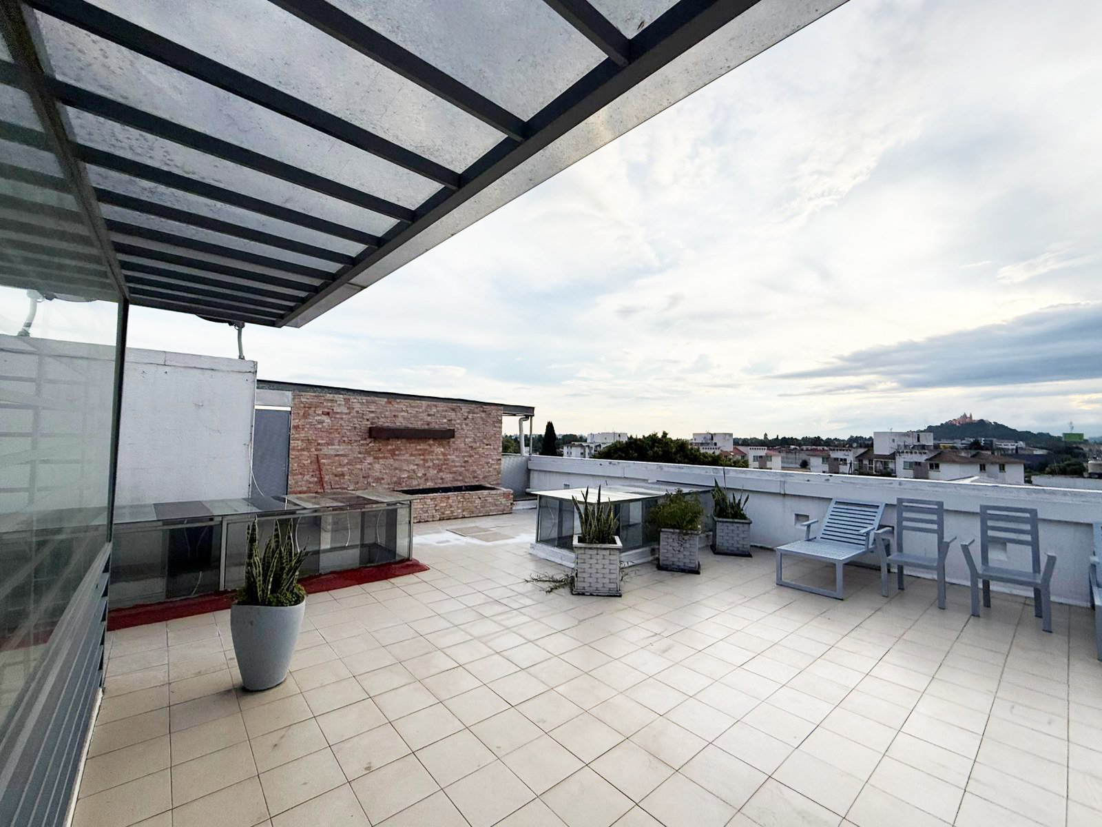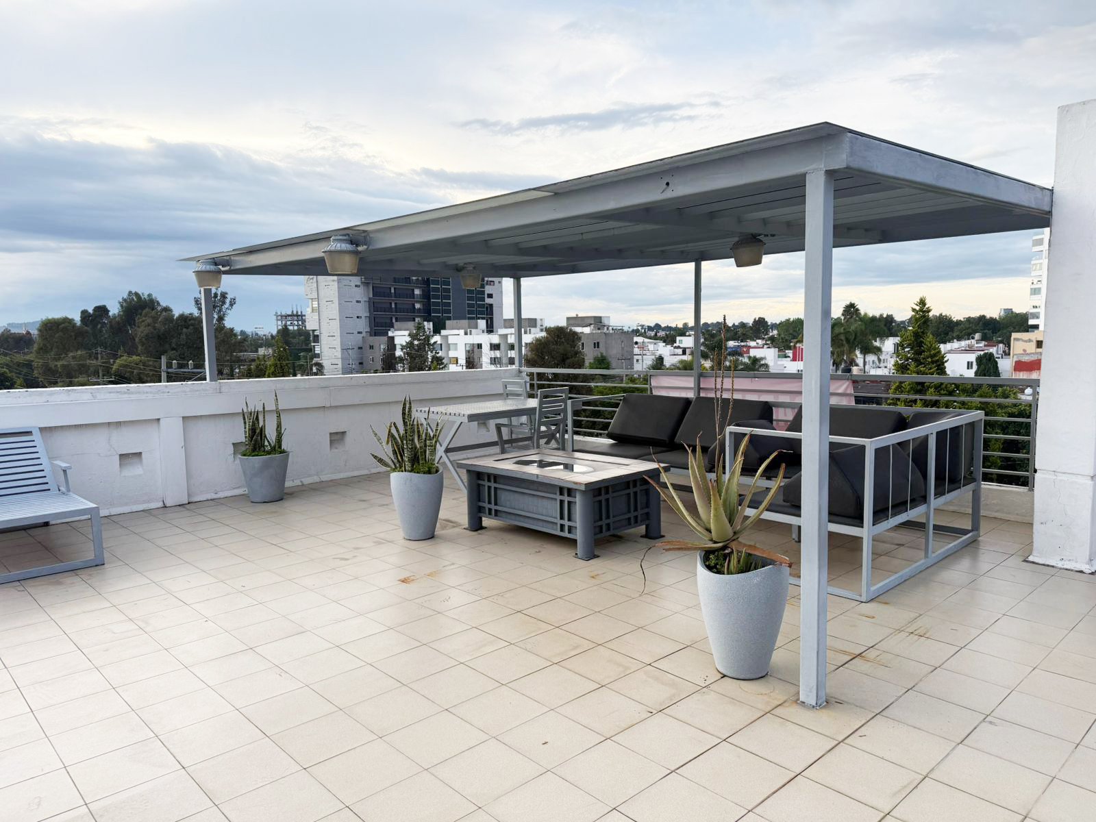 Departamento amueblado cuenta con dos recamaras, sala – comedor, cocina integral, área de lavado, baño completo, medio baño de visitas, roof garden.