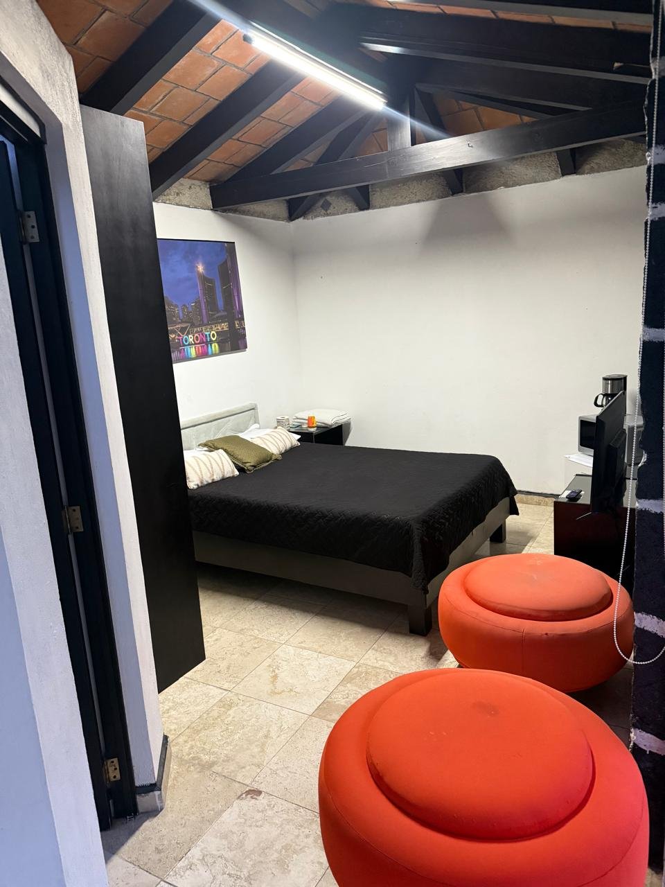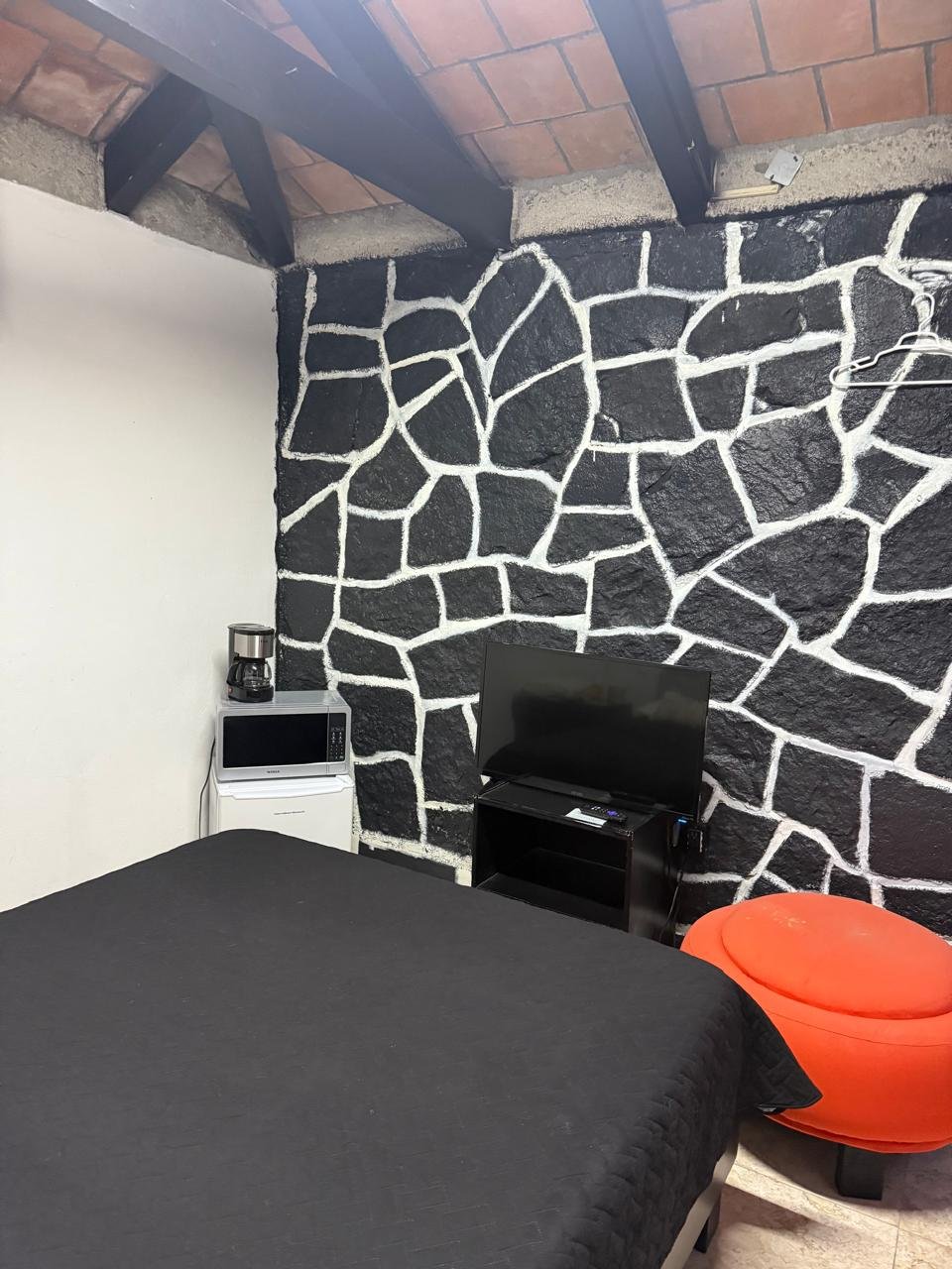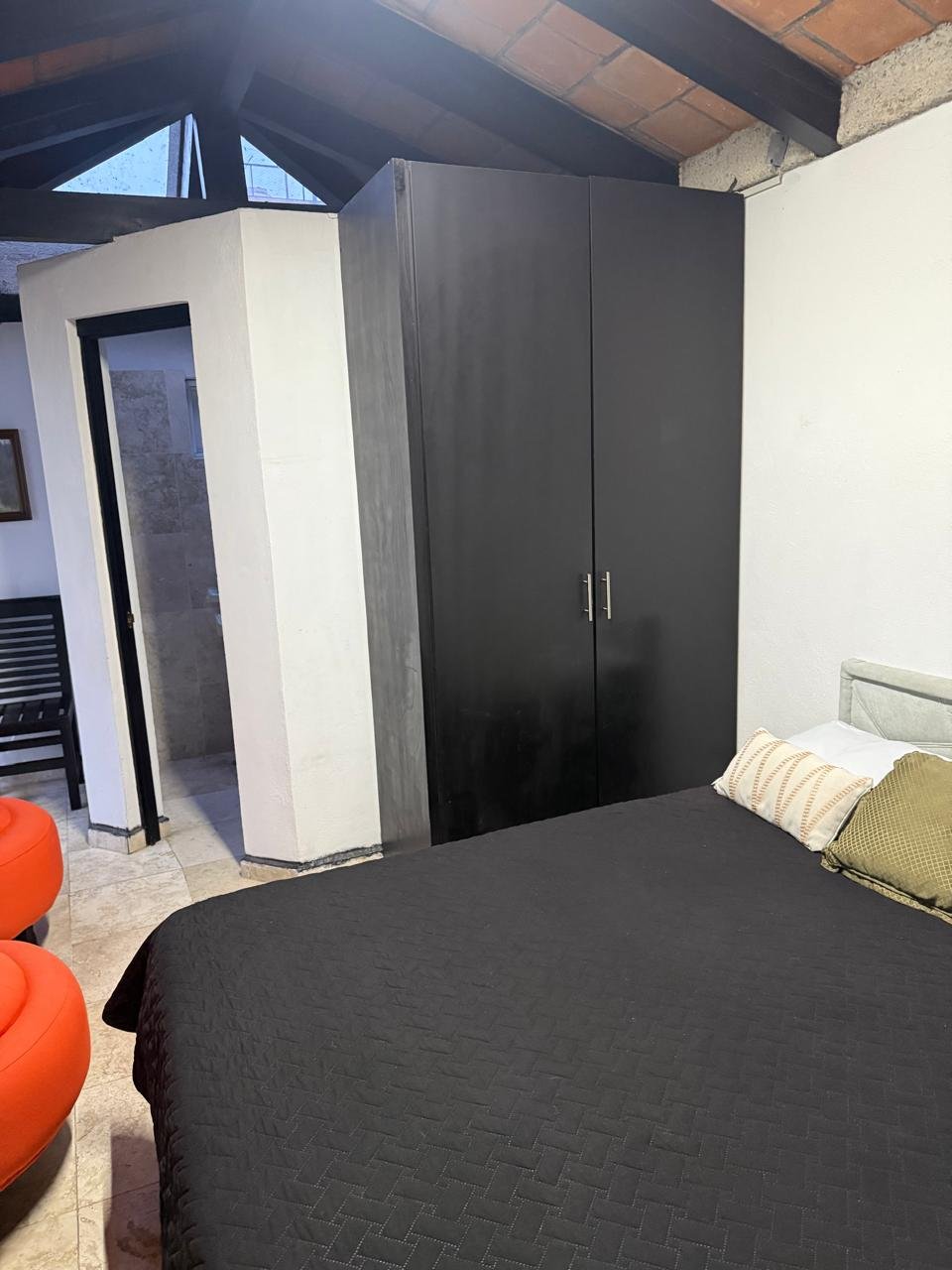 Incluye cama matrimonial, baño, closet, agua caliente, refrigerador, cafetera, microondas, luz, internet, limpieza una vez a la semana, seguridad las 24 horas. El área común consta de zona de cocina, comedor y jardín.